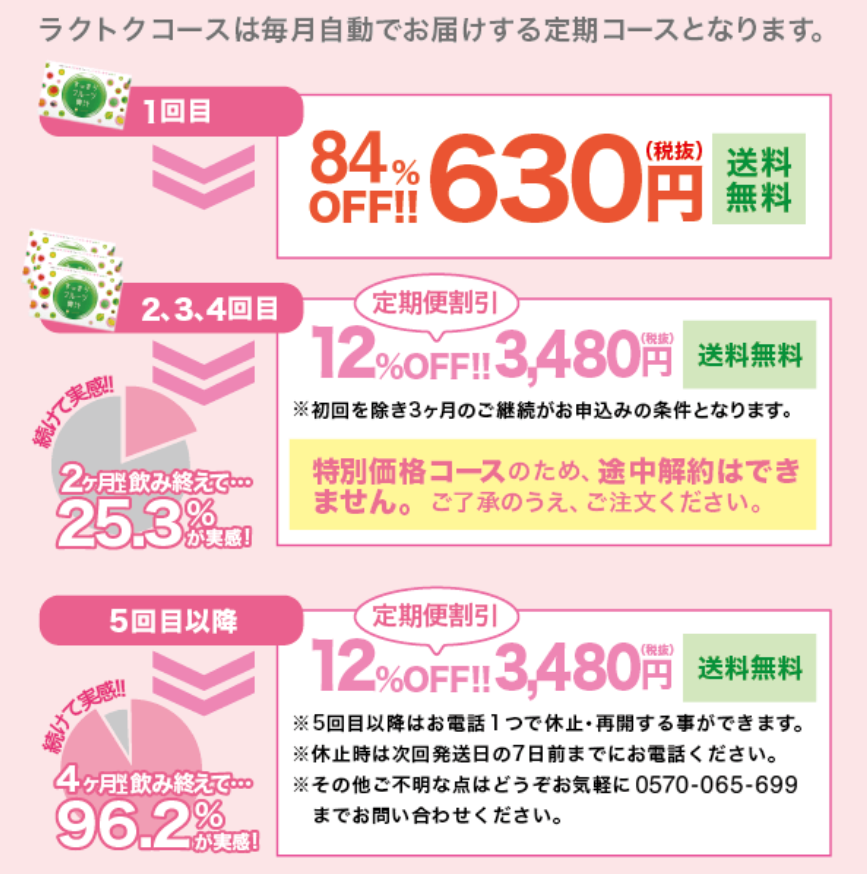 ダイエットは半月や1か月ではなかなか結果が出ないので、最初から公式サイトのラクトクコースを使ってチャレンジしてみるのがおすすめです。
