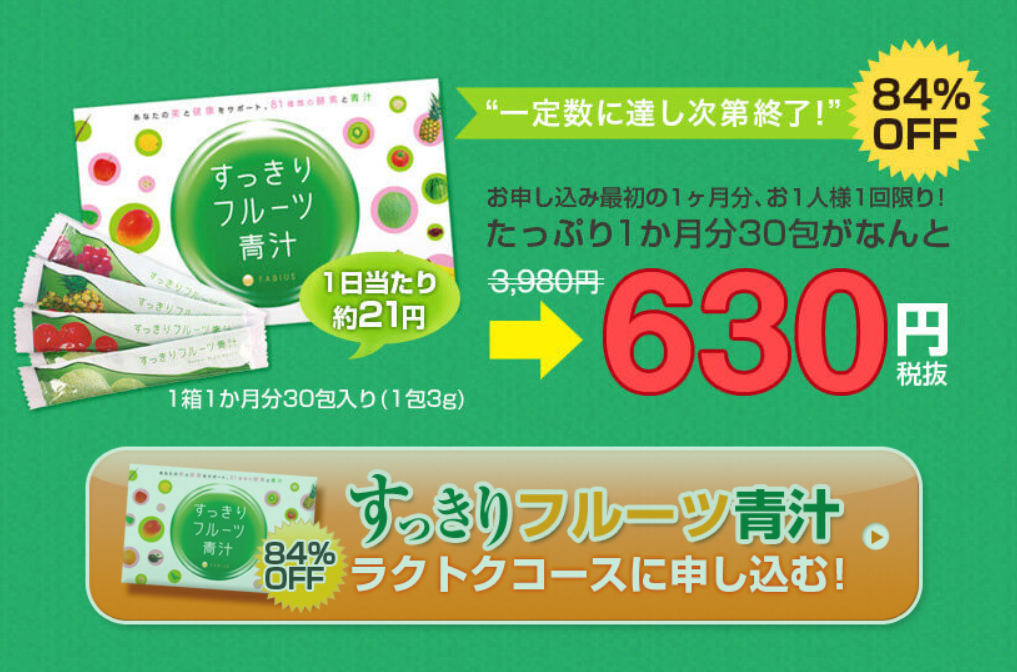 ↓すっきりフルーツ青汁が一番お得に購入できる公式サイトを確認する
