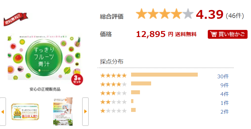 楽天で見た評価は46人が評価しており、 4.39とこちらも非常に高い評価でした。